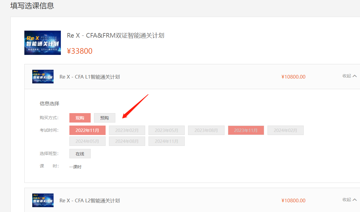 步驟三、選擇班型。如果您購買的是套餐,請(qǐng)選擇套餐中每個(gè)課程的班型。