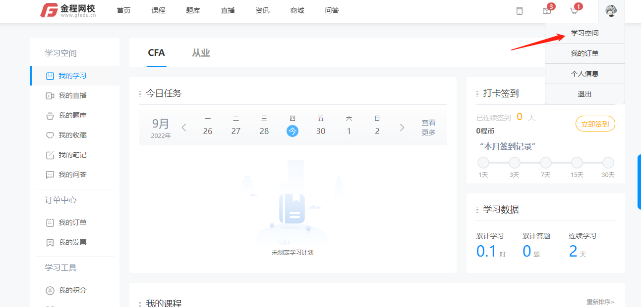 步驟七、支付完成后,系統(tǒng)會(huì)自動(dòng)開課(預(yù)售課程除外),您可以到學(xué)習(xí)空間中查詢到此課程。