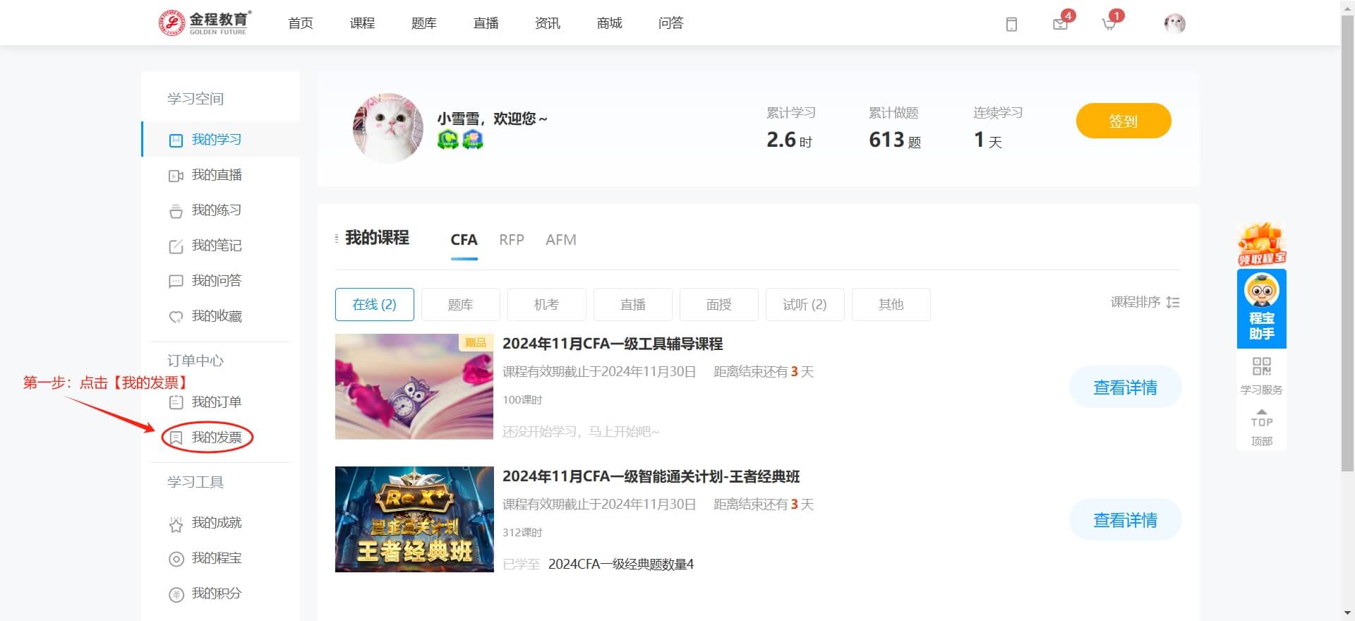 步驟一、進(jìn)入“學(xué)習(xí)空間”,點(diǎn)擊“我的發(fā)票”