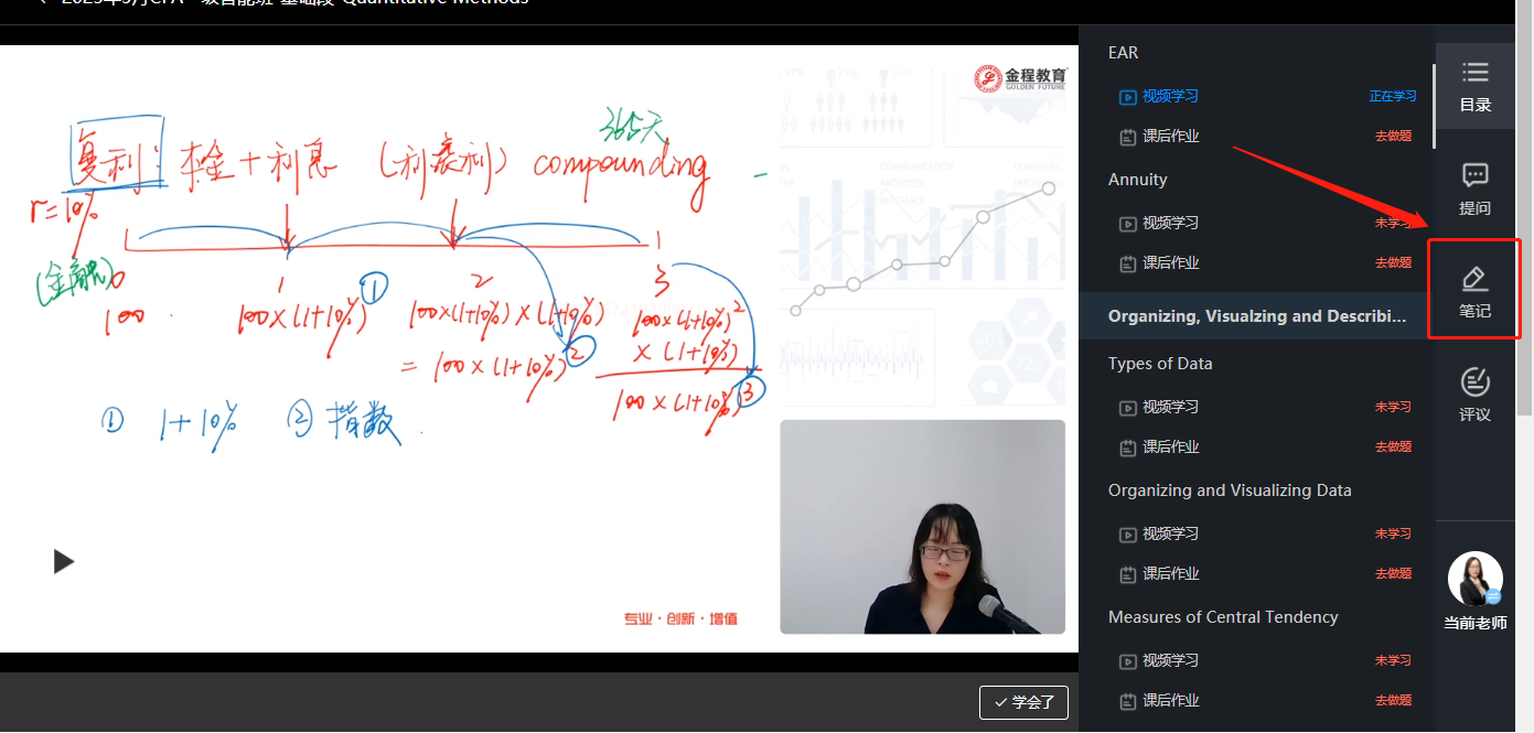 步驟一、點(diǎn)擊學(xué)習(xí)視頻右側(cè)的“筆記”