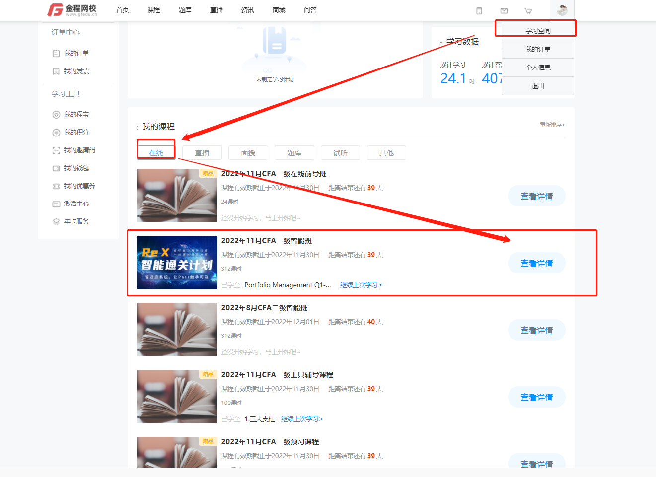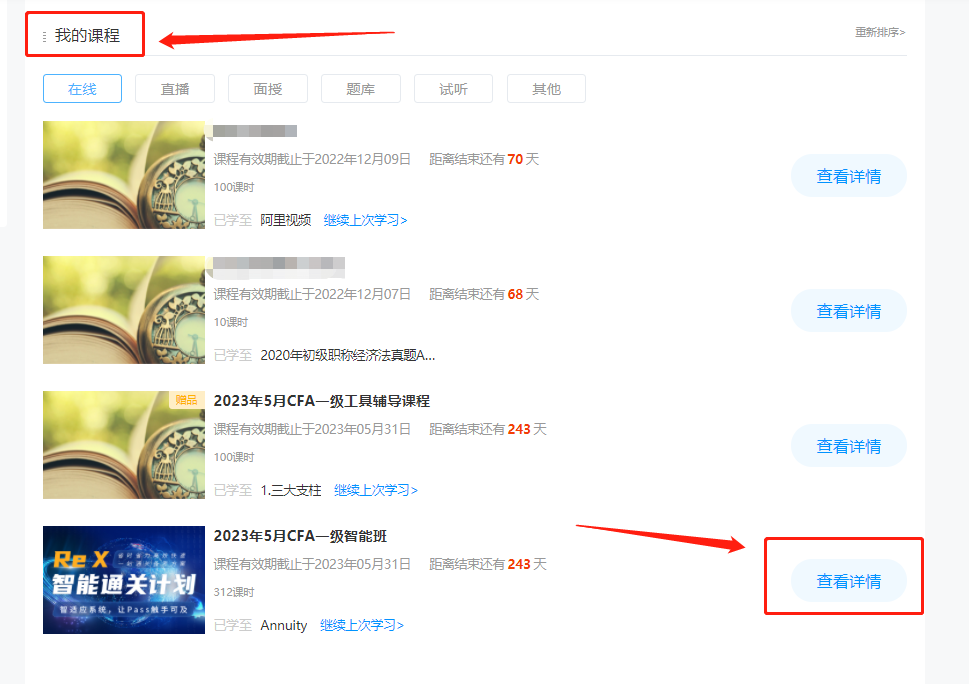 步驟二、下拉至“我的課程”-點(diǎn)擊“查看詳情”
