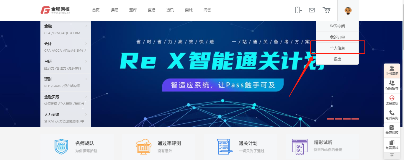 步驟一、點(diǎn)擊網(wǎng)校右上角頭像進(jìn)入“個(gè)人信息”