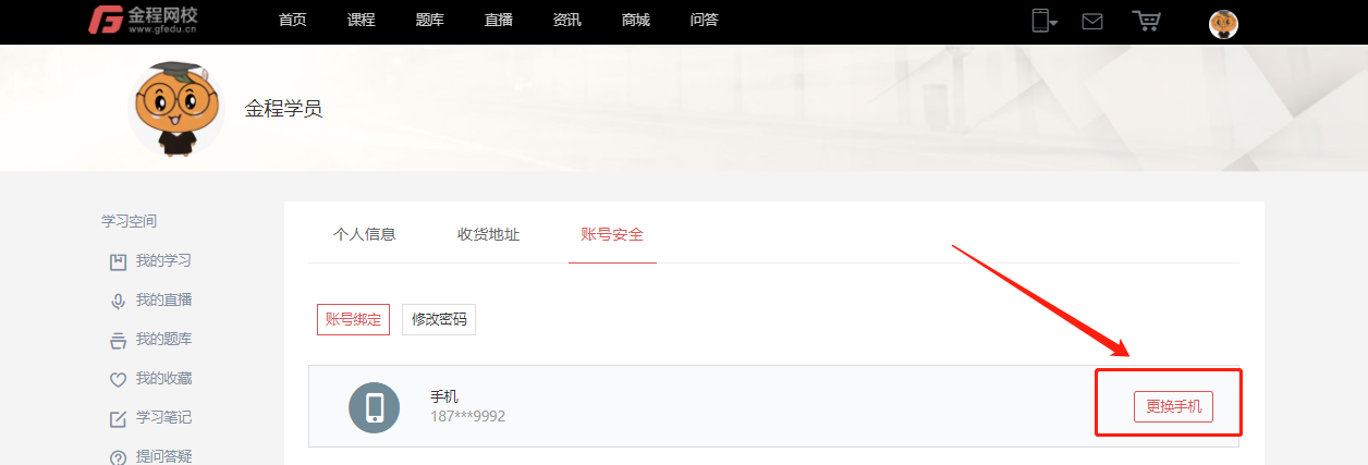 注意:如新手機(jī)號(hào)已在網(wǎng)校注冊(cè),則無法自行更換,需聯(lián)系班主任后臺(tái)進(jìn)行更換。